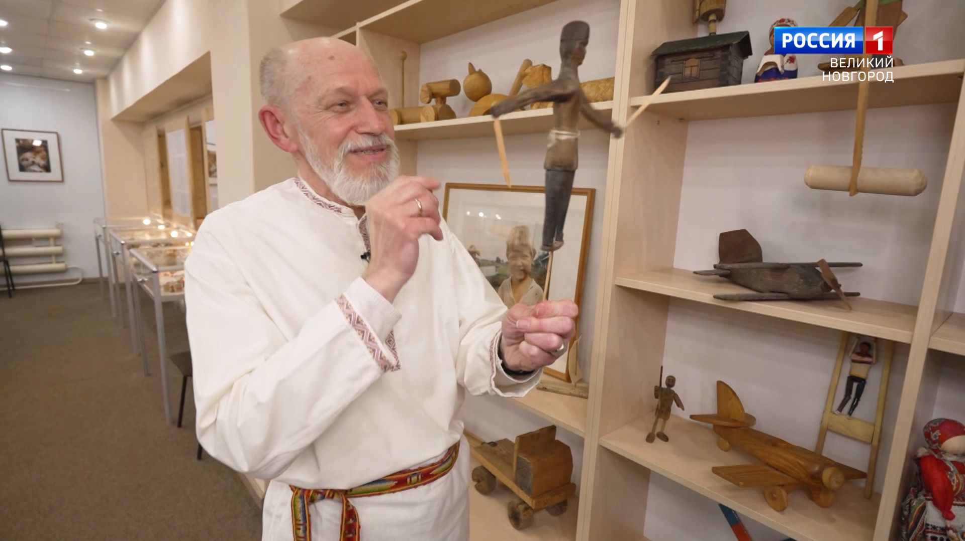 Герой программы «Вести-Интервью» - этнограф, исследователь игр и собиратель игрушек Александр Назаркин. Его мастерская в Новгородском областном Доме народного творчества является точкой притяжения для взрослых и детей, открывая бесконечно интересный мир предметов, с которыми играли когда-то и в которые играют сейчас.