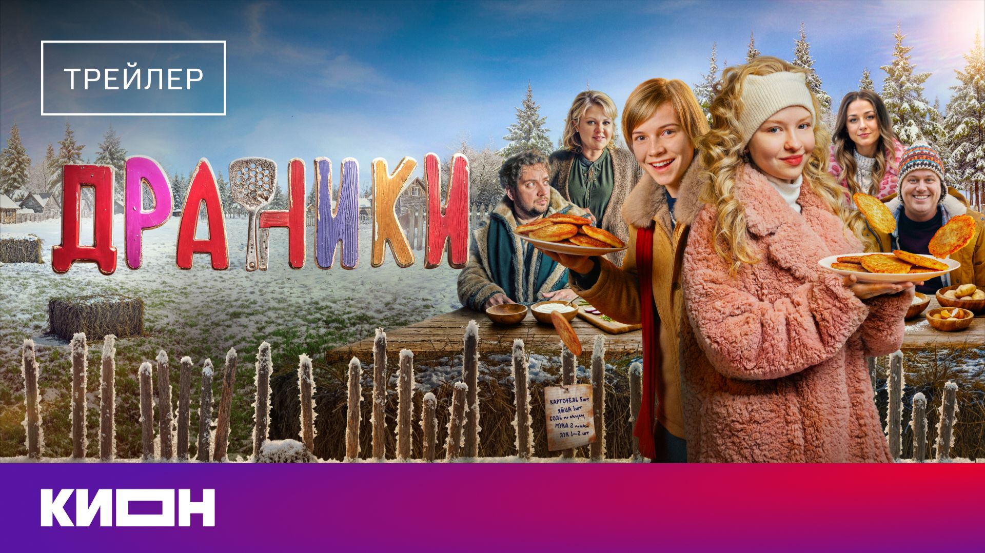 Трейлер семейной комедии «Драники» — с 9 апреля на КИОН: https://clck.ru/3StNYq Онлайн-кинотеатр «КИОН» объявляет о цифровой премьере семейной комедии «Драники» — истории о подростке, открывающем свой гастрономический бизнес, чтобы помочь родителям. Главные роли исполнили Мирон Лебедев, Ингрид Олеринская, Андрей Пынзару, Борис Дергачев, Валентина Мазунина и другие. Режиссер проекта — Максим Максимов («Клёвый УLove», «Мой папа — медведь»). Фильм выйдет на КИОН 9 апреля. Макс мечтает провести зимние каникулы в городе — с друзьями и видеоиграми, — но вместо этого родители увозят сына на деревню дедушке. Там он случайно узнаёт, что его отец потерял работу и теперь семье даже нечем платить по счетам. Не желая оставаться в стороне, Макс вместе с двоюродным братом Юрой и новой подругой Олей придумывает свой малый бизнес: превратить старый УАЗик деда в фудтрак и начать продавать драники. Однако их планам может помешать глава колхоза, рассчитывающая на процент от продаж. «Драники» — это легкая семейная комедия, выстроенная по канонам современного зрительского кино для широкой аудитории. В центре — тема семейных ценностей, доверия и диалога между поколениями, где дети оказываются более решительными и открытыми, чем взрослые. Особое внимание в картине уделено теме преемственности и тому, как простые вещи вроде семейного рецепта могут стать символом единства. Производство: «БигСкринПродакшн», «Кино Цех» Продюсеры: Андрей Липов, Максим Максимов, Ольга Галузинская, Сергей Артеменко, Андрей Черникевич Режиссер: Максим Максимов Автор сценария: Андрей Липов Оператор: Павел Скакун Композитор: Виталий Балдыч Художник: Александр Трещинский В ролях: Мирон Лебедев, Кирилл Ермаков, Ева Смирнова, Борис Дергачёв, Валентина Мазунина, Ингрид Олеринская, Ирина Кобзева, Георгий Волчек, Андрей Пынзару, Лариса Карасина, Моника Еронова Сайт - https://kion.ru/ Социальные сети: — Наш Telegram - https://t.me/kionru — Мы в VK - https://vk.com/kionru — Мы в Одноклассниках - https://ok.ru/kionru — Мы в Дзене - https://dzen.ru/kionru — Мы в YouTube - https://www.youtube.com/@kionru