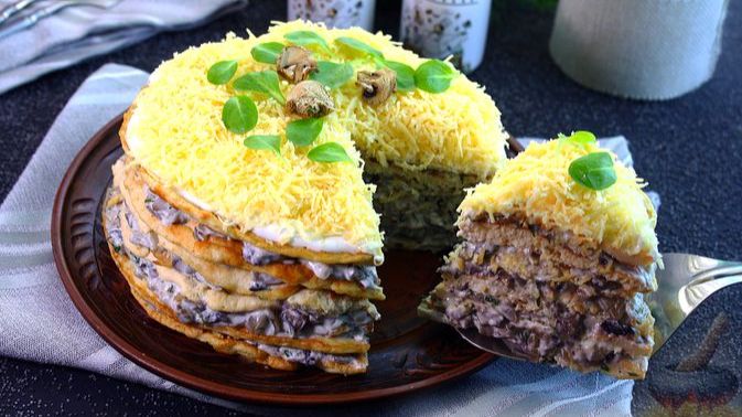 ЗАКУСОЧНЫЙ ТОРТ С КУРИЦЕЙ И ГРИБАМИ