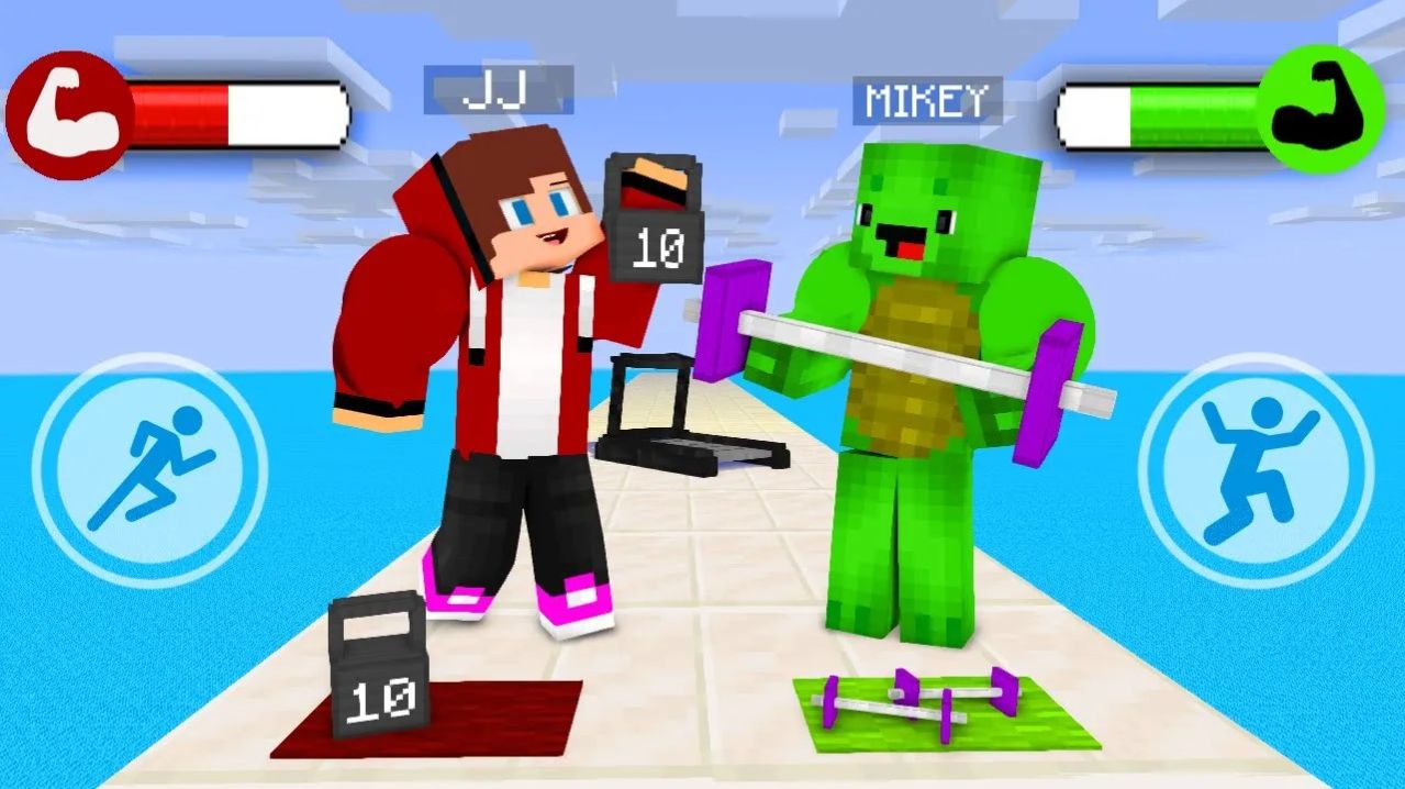 Джей Джей против Майки в игре Мышечный Раш. Майнкрафт Мультик