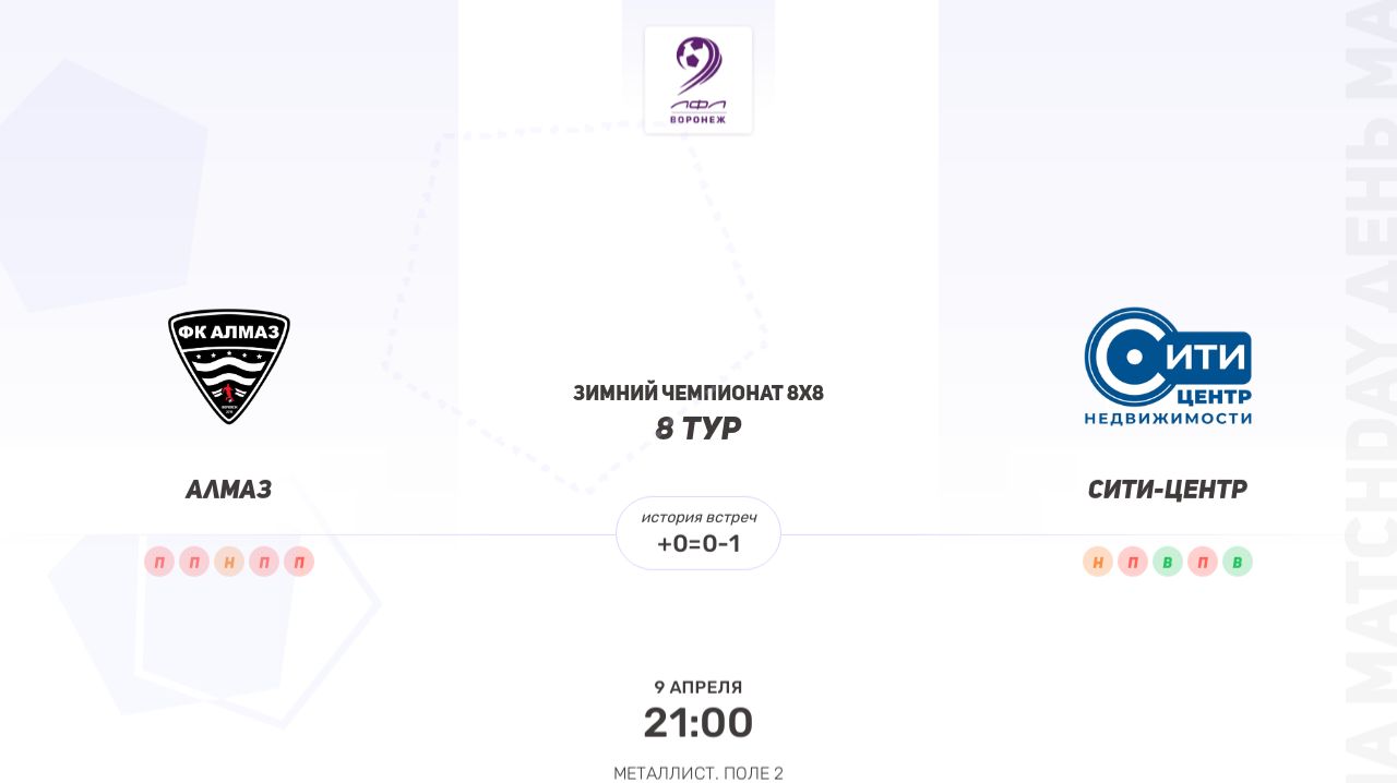 Алмаз × Сити-Центр. Пятая лига. Зимний чемпионат 8х8