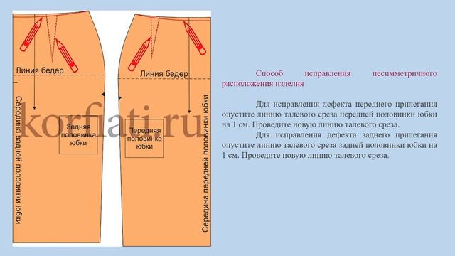 При использовании готовой выкройки юбки возникают дефекты посадки изделия, как их исправить рекомендует А.Корфиати.