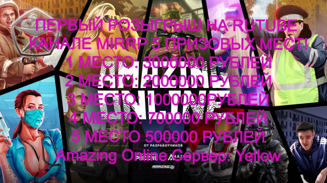 Для того что бы участвовать в розыгрышевам обязательно нужно быть подписанным на каналы Рутуб,Телеграм,Мах,ВК,Ютуб, Ссылки ниже проверять буду лично! Написать комментарий под этим видео указав свой игровой ник на Amazing Online Сервер: Yellow Провожу розыгрыш лично от себя иза этого только мой игровой сервер Yellow Игровой ник обязательно! Розыгрыш будет 26.04.2026 Года в 13:00 По москве! Быть подписанаму на каналы: Группа в МАХ: https://max.ru/join/iHWugAD8Bqzc88aR6KujanIxWMY3bHziHcTyQYefzWk Группа в ВК: https://vk.com/mir_rpru Группа в Телеграм: https://t.me/krestdb Ютуб: https://www.youtube.com/@mir-rpru На все эти каналы или на макс или на телеграм а лучше все! Ссылка на Донат: https://www.donationalerts.com/r/mir_rpru Карта озон банк: 2204321007130602