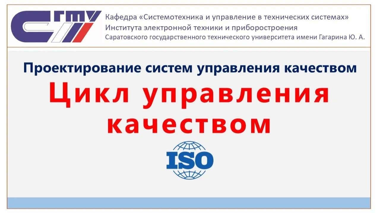 Вторая часть лекции по курсу Проектирование систем управления качеством 🟣 Кратко об основоположниках науки об управлении качеством 0:00 🟣 Что такое качество? 1:38 🟣 Что такое управление качеством? 3:51 🟣 Какие существуют свойства у бизнес-процессов? 5:25 🟣 Как определяют показатели процессов? 5:40 🟣 Какие метрики могут быть у процессов? 8:19 🟣 По каким принципам производится управление качеством? 10:04 🟣 Что такое система управления качеством? 15:58 🔴🔴🔴 Цикл управления качеством 17:28 🔴 Определение процессов, протекающих на предприятии 17:51 🔴 Создание регламентированных процедур 19:16 🔴 Формирование Руководства по качеству 21:33 🔴 Определение политики в области качества 22:02 🔴 Определение стратегических и оперативных планов 22:51 🔴 Формулирование целей по качеству 23:27 🔴 Идентификация рисков 24:22 🔴 Выполнение намеченных планов 25:08 🔴 Запись и регистрация фактов управления качеством 25:44 🔴 Измерение фактических показателей качества процессов 26:29 🔴 Регистрация несоответствий 27:09 🔴 Регистрация осуществления (не осуществления) рисков 27:45 🔴 Разработка корректирующих и предупреждающий мероприятий 28:11 🔴 Контроль исполнения регламентированных процедур 29:20 🔴 Формирование Отчёта по качеству со стороны руководства 29:33 🟣 О чём третья лекция по проектированию СМК 30:50 Ещё по теме управления качеством: https://www.youtube.com/watch?v=htInS_vzzBY&t=603s https://www.youtube.com/watch?v=7bV2qk0syu0&t=377s #смк #управлениекачеством #iso #игник
