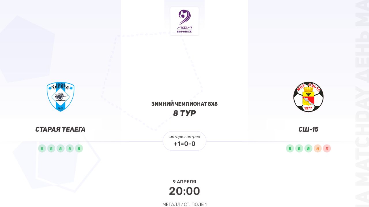 Старая Телега × СШ-15. Пятая лига. Зимний чемпионат 8х8