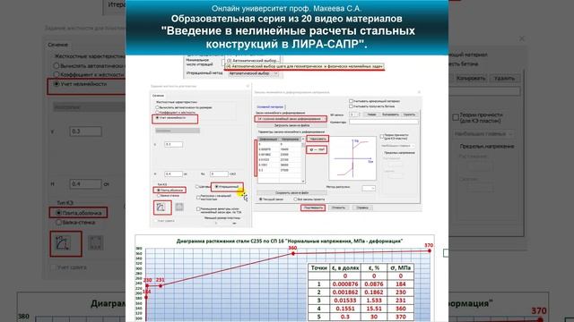 9. Как вводить нелинейную диаграмму растяжения стали по СП 16.13330.2017 в ЛИРА-САПР