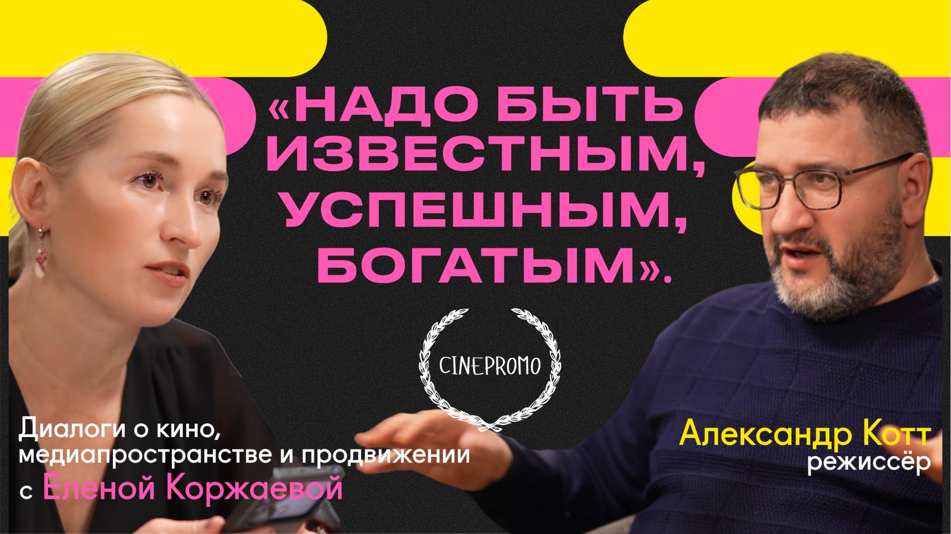 Героем подкаста CINEPROMO стал режиссёр Александр Котт (“Брестская крепость”, “Ёлки”, “Чук и Гек. Большие приключения”, “Обратная сторона Луны”, “Северный полюс” и пр.), участник и призёр крупнейших кинофестивалей по всему миру: в Берлине, Токио, Котбусе, Бильбао, Кракове, Гамбурге, Тайване, Москве и пр. Он преподает во ВГИКе и снимает как артхаусные фильмы, так и коммерческие, будучи ещё и одним из самых универсальных постановщиков, при этом не теряющих своего авторского узнаваемого голоса и взгляда. “У меня профессиональная болезнь, потому что где бы я ни находился, я сканирую пространство и ощущаю себя на съемочной площадке. Я представляю себе кадры, как бы выставил композицию... Дорога домой для меня – это кинокадр, поездка в лифте – это кинокадр,” – признался Александр Котт. Режиссёр рассказал, чем отличается полный метр от короткого на уровне сценария, съёмок и монтажа, есть ли разница между зрительским кино и авторским (спойлер – есть), когда редактура уместна, и стоит довериться продакшену, платформе или телеканалу, а также как адаптировать чужой сценарий под себя. “С театром у меня сложная история. Ну, я не могу это объяснить. – продолжил Александр Котт, – Физиологический рефлекс. Темнота, полумрак, тишина, какое-то бормотание, полуколыбельная, удобное кресло… У меня физически закрываются глаза, потому что организм хочет спать. Ещё такие постановки… Лучше бы ты их не видел. И ты мучаешься”. Режиссёр рассказал, где ищет выразительные лица для своих фильмов, почему так часто работает с Павлом Деревянко, как проводит кастинги и относится к кровнородственному и супружескому протекционизму в кино. “Я просто слишком быстро привык к хорошему. А потом кран выключили, и ты резко со скоростью метеорита врезался в землю,” – Александр Котт откровенно рассказал о провале в своей карьере и поделился безотказным рецептом от уныния, кризисов и безработицы. Хотели бы поблагодарить за информационную поддержку данного выпуска телеканал SHOT TV, информационный портал для профессионалов кинобизнеса ProfiCinema и информационно-аналитическое сетевое издание для профессионалов в сфере кинобизнеса Cinemaplex. --- Ежемесячный подкаст CINEPROMO о кино, медиапространстве и продвижении, куда мы приглашаем ведущих деятелей российской медиаиндустрии и выясняем, как кино устроено изнутри. --- CINEPROMO — российская компания №1 по фестивальному продвижению фильмов. Ещё мы делаем субтитры, DCP и DPX, переводим сценарии и готовим расшифровки видео, оформляем Прокатные удостоверения (ПУ) и Удостоверения национального фильма (УНФ), занимаемся дистрибьюцией короткого метра и проводим собственный кинофестиваль. Также у нас вы можете заказать подготовку комплекта документов и материалов для сдачи отчетности по производству фильмов, созданных при государственной финансовой поддержке Министерства культуры РФ. На нашем сайте можно подписаться на Базу питчингов, грантов и сценарных лабораторий для разработки, поиска финансирования и продвижения своих проектов на любом этапе — от идеи и сценария до постпродакшена: https://cinepromo.ru/