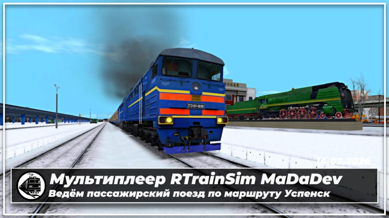 -------------------------------------- 💲💲💲 --------------------------------------- ✅ Поддержать развитие канала и новые сценарии: ▪️https://new.donatepay.ru/@andreich07 ▪️https://www.donationalerts.com/r/andreich07 --------------------------------------- 💲💲💲 --------------------------------------- ✅ Графиковый мультиплеер RTrainSim MaDaDev в субботу 14.02.2026. ▪️ 2ТЭ10УТ-0048 по маршруту Успенск ▪️ Маршрут Успенская-II - Малахитовка, наряд №7 ▪️ Электрификация: отсутствует, дизельная тяга ▪️ Погодные условия: Зима, снег --------------------------------------- 🚂🚂🚂 --------------------------------------- ✅ Скачать сборку RTrainSim и принять участие в мультиплеерах: ▪️https://madadev.net/ ✅ Мой канал на YouTube: https://www.youtube.com/channel/UCTrYKs5kKmzc9iuDymXH4Iw --------------------------------------- 🖥️🖥️🖥️ --------------------------------------- ✅ Мой ПК: ▪️ Процессор AMD Ryzen 5 5600X ▪️ Материнская плата GIGABYTE B550 GAMING X V2 ▪️ Видеокарта GIGABYTE NVIDIA GeForce RTX 3060 EAGLE OC ▪️ Оперативная память G.Skill Aegis 32 гб ▪️ SSD накопитель ADATA LEGEND 710 M.2 1 ТБ --------------------------------------- 🖥️🖥️🖥️ --------------------------------------- #rtrainsim #rts #mdd #madadev #2тэ10у