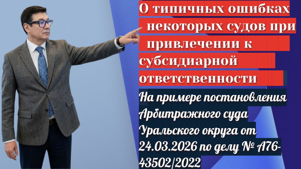 Видео касается довольно типичной ошибки арбитражных судов при привлечении к субсидиарной ответственности. Когда причина и следствие меняются и возникают ошибки. Речь идет о примере спора, когда суды первых двух инстанций привлекли к субсидиарке ответчика фактически за то, что произошло банкротство, предъявив сверхзавышенные требования к директору. Подробнее в видео.