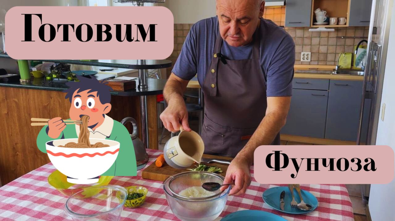 Фунчоза по-корейски. Стеклянная лапша. Азиатская лапша. Готовит Эдуард Иванович.