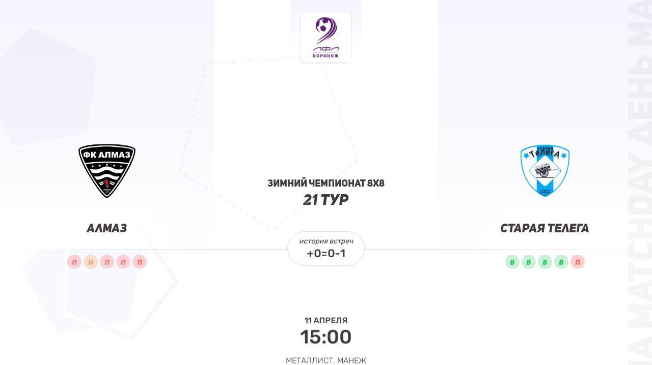 Алмаз × Старая Телега. Пятая лига. Зимний чемпионат 8х8